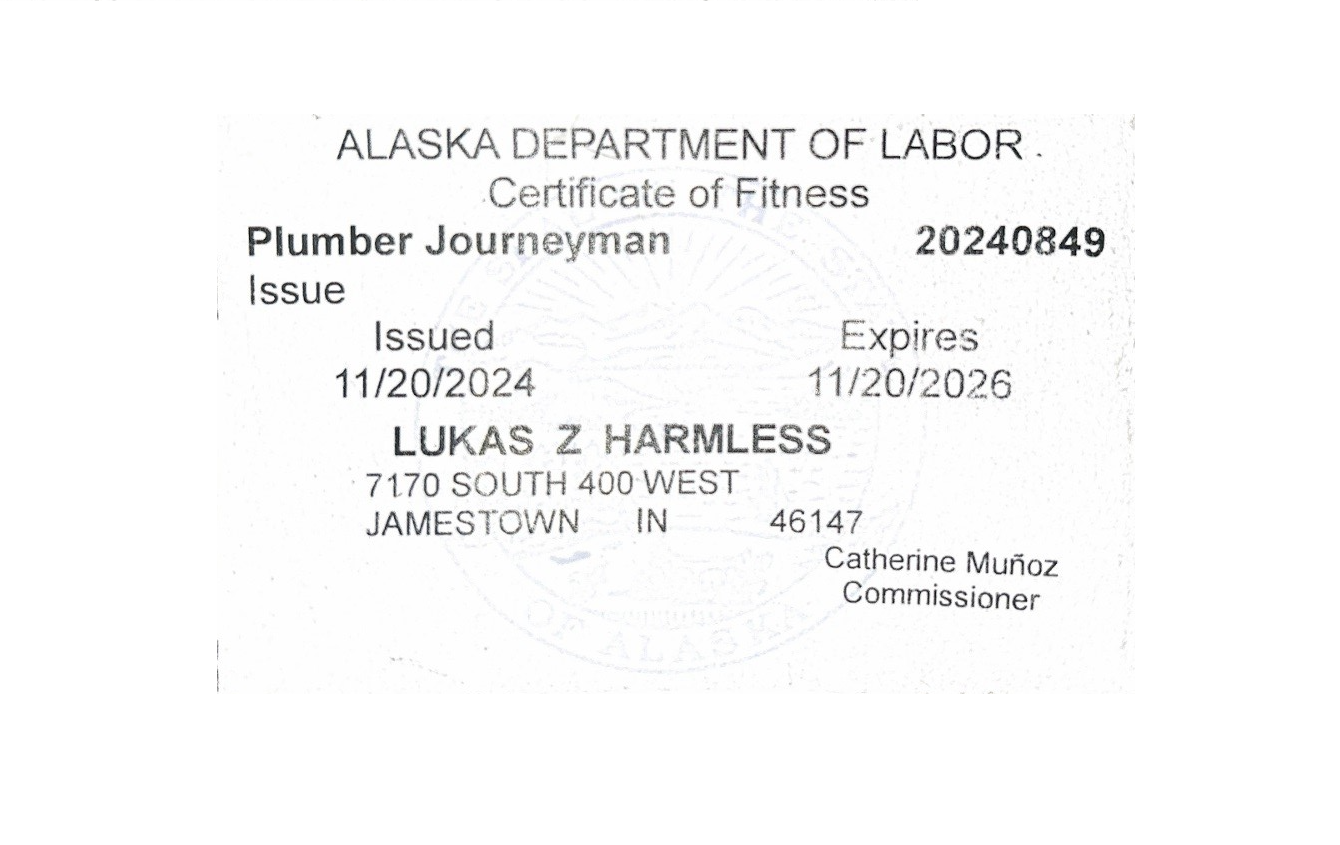 Plumber Journeyman Lic: 20240849